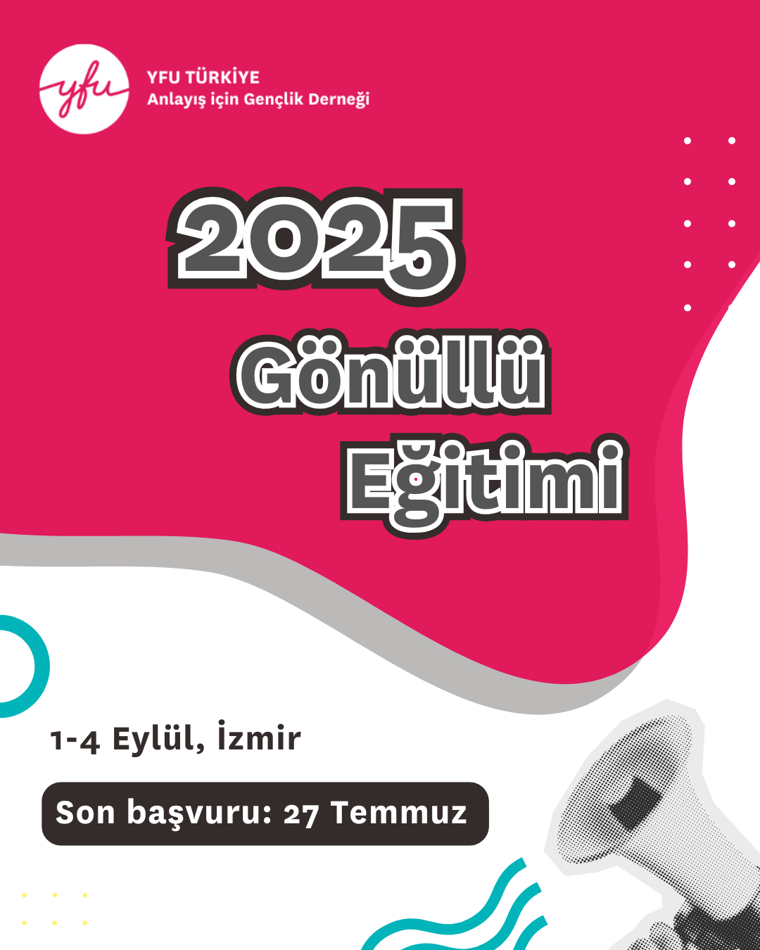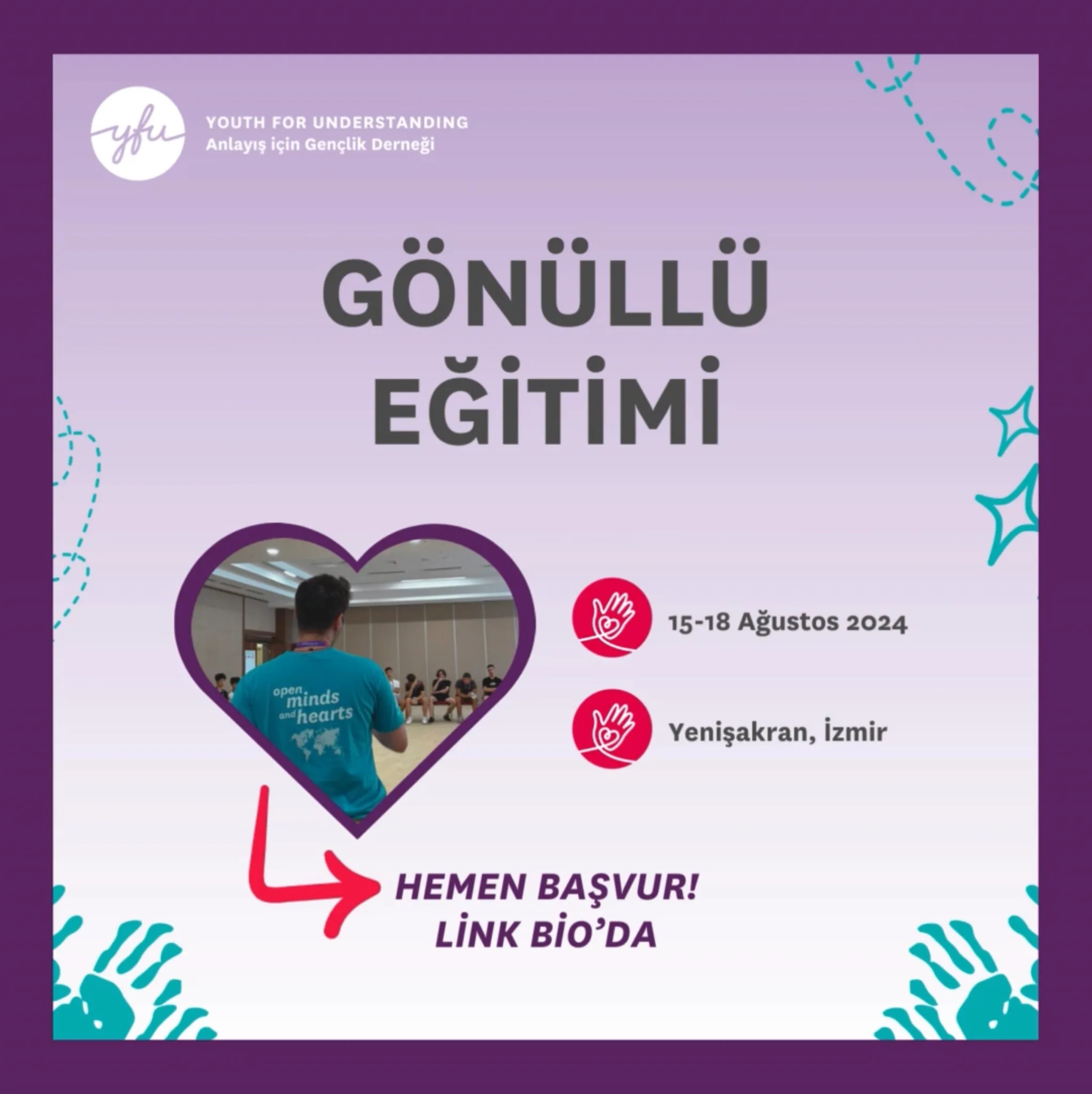 Yeni rolünüze başlamanız için gerekli eğitim Anlayış için Gençlik Derneği tarafından sağlanacaktır.